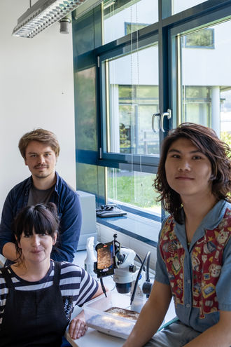 Im Hans-Knöll-Institut mit den Forscher:innen des FungiNet stehen Pilze im Vordergrund. So wird etwa der Aspergillus fumigatus genauer unter die Lupe genommen, dessen Infektion in einigen Fällen zur Sepsis führen kann. Konkret im Verdacht stehen extrazelluläre Vesikel, welche wenige Nanometer groß sind. Diese müssen erst einmal sichtbar gemacht werden. In einem anderen Labor steht Candida albicans unter Beobachtung, welcher wieder eigentlich nicht schädlich ist, aber in bestimmten Konstellationen die Darmflora durcheinander bringen kann. Um die Auswirkungen, aber auch Medikamentierung dieser Pilze überprüfen zu können, sind Lebendversuche unvermeidbar, die aber im Mäuselabor unter höchsten ethischen Standards durchgeführt werden. Sollten aus diesen Forschungen neue Substanzen entwickelt werden, dann werden diese im Laboratorium der Wissenstransfergruppe auf ihre Reinheit und Eignung überprüft. Doch um zu diesen Erkenntnissen zu kommen müssen erstmals oft Stunden an Mikroskopaufnahmen ausgewertet werden. Damit das automatisiert geschehen kann, gibt es die Expert:innen der Bioinformatik, die mit unterschiedlichen Datenverarbeitungstechniken Bilder analysieren und quantifizieren.